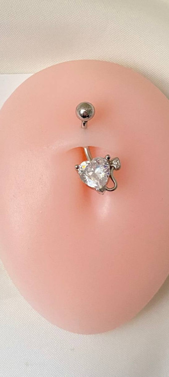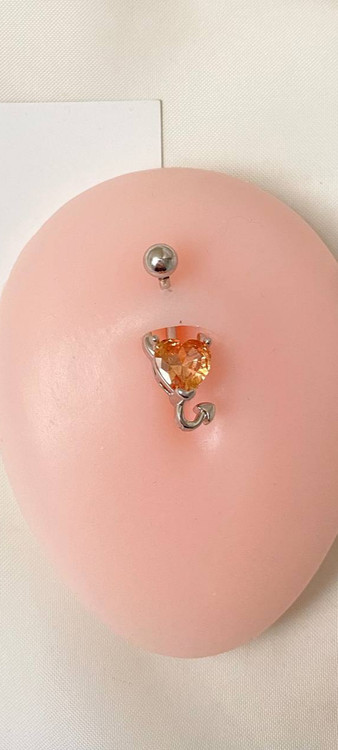 پیرسینگ استیل ناف قلب شیطان کوچیک نگین دار